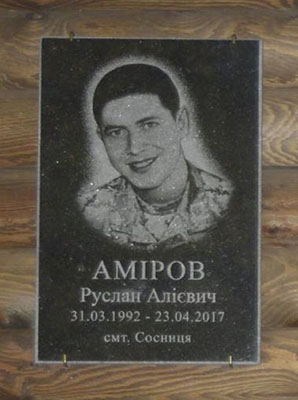 Портрет на меморіалі "Стіна пам'яті полеглих за Україну" у Києві: секція 9, ряд 5, місце 31.