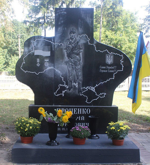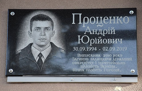 Портрет на меморіалі "Стіна пам'яті полеглих за Україну" у Києві: секція 11, ряд 1, місце 19.