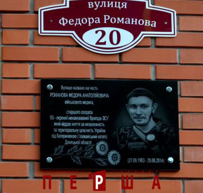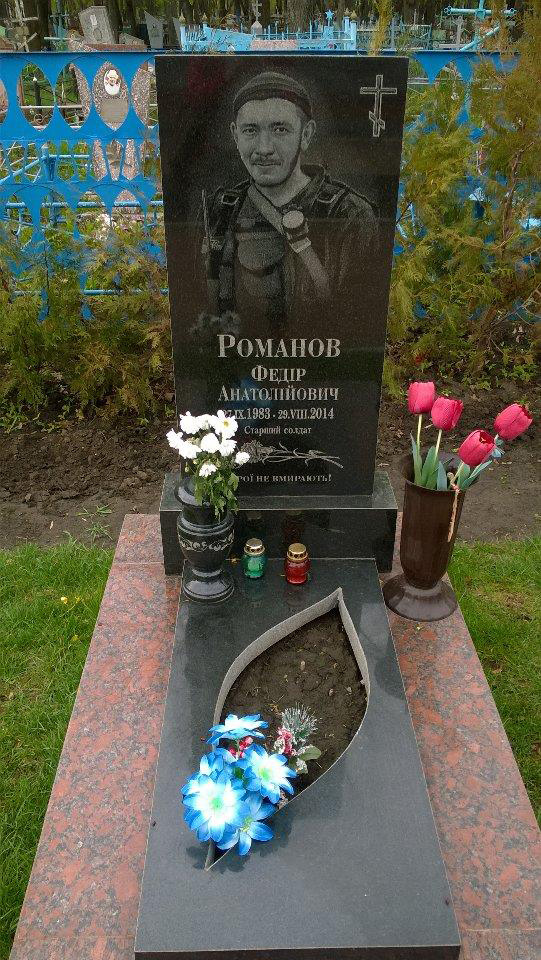 т.зв. "Зеленим коридором" на дорозі в районі с. Новокатеринівка. 2 вересня 2014 р. тіло Романова Ф.А. разом з тілами 87 інших загиблих у т.зв.