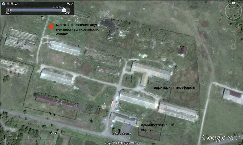 на території птахоферми, неподалік від Іловайська, разом з тілом військовослужбовця 40-го БТРО "Кривбас"