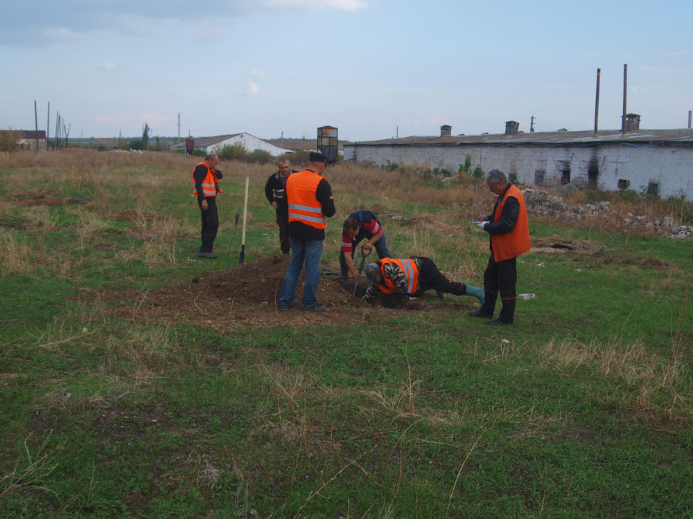 безіменній могилі у селі Грабське (Амвросіївський район, Донецька область) 28 вересня 2014 р.,