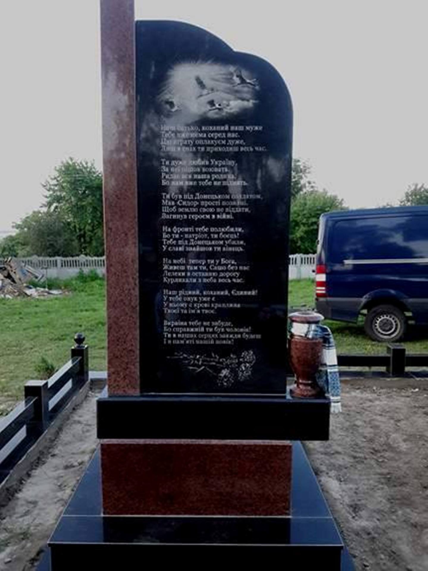Портрет на меморіалі "Стіна пам'яті полеглих за Україну" у Києві: секція 7, ряд 3, місце 1.