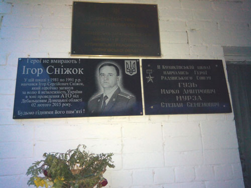 антитерористичної операції на Сході України, уроженця селища підполковника Сніжка Ігоря Сергійовича. ЇЇ вастановлено на фасаді навчального