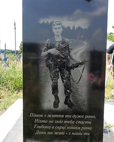 Портрет на меморіалі "Стіна пам'яті полеглих за Україну" у Києві: секція 2, ряд 1, місце 5.