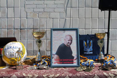 Портрет на меморіалі "Стіна пам'яті полеглих за Україну" у Києві: секція 2, ряд 1, місце 9.
