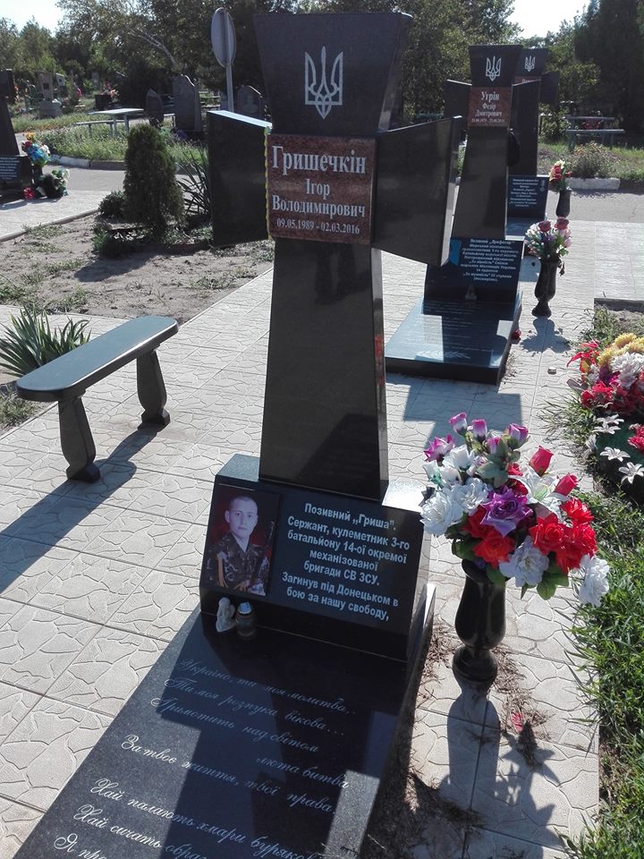 Місце поховання: м. Херсон, кладовище Геологів, меморіал пам'яті загиблих бійців АТО (фото надгробку: ).