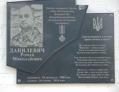 Пам’ятний знак у вигляді хреста як шану загиблому землякові в боях за визволення Донбасу Роману Данилевичу