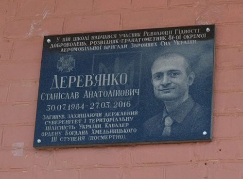 Портрет на меморіалі "Стіна пам'яті полеглих за Україну" у Києві: секція 8, ряд 3, місце 19.